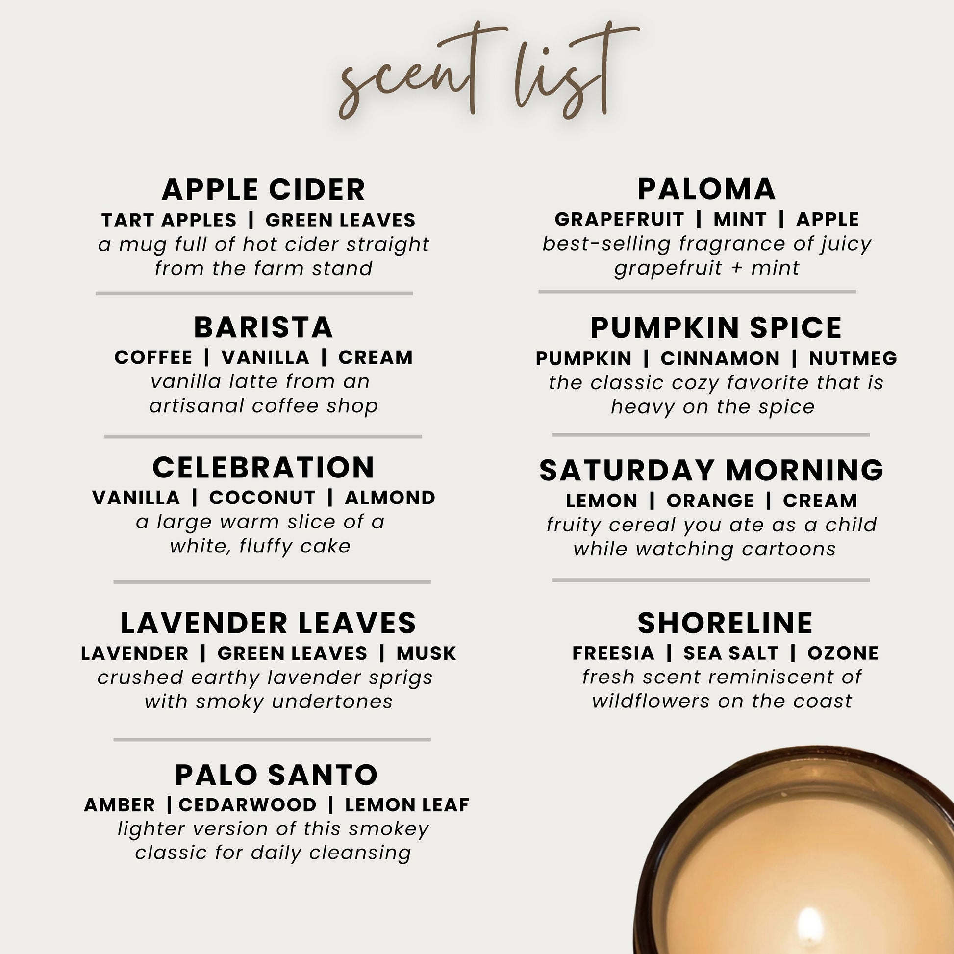 Rotating Limited Seasonal Scents: small batch pours inspired by the colors and moods of the season